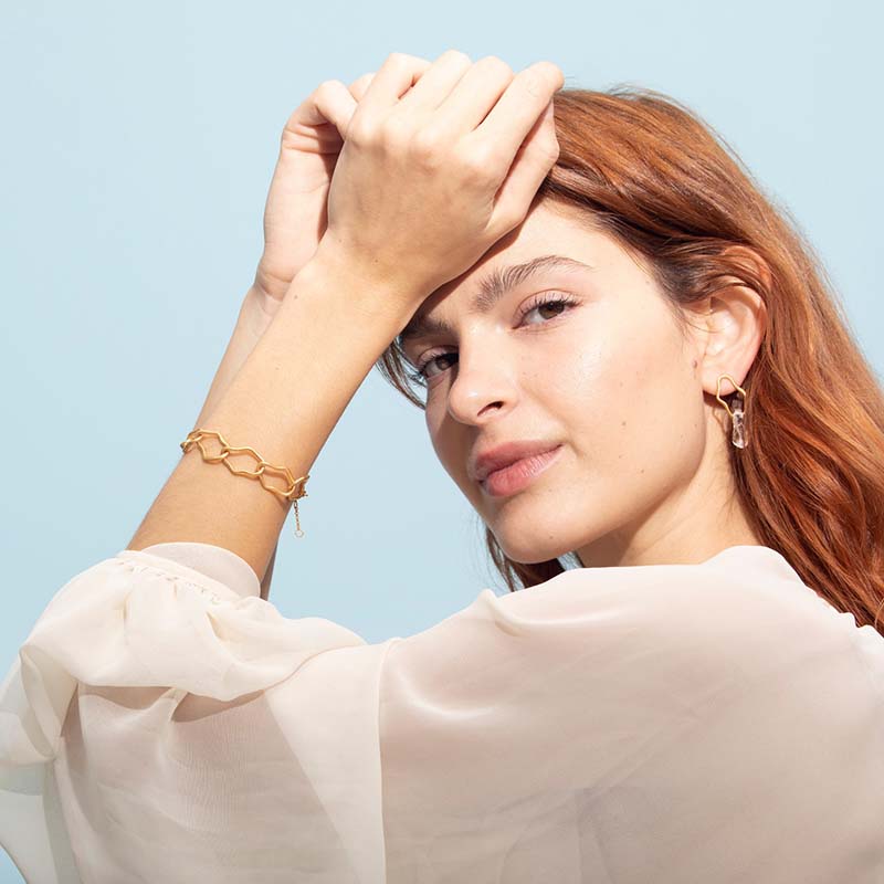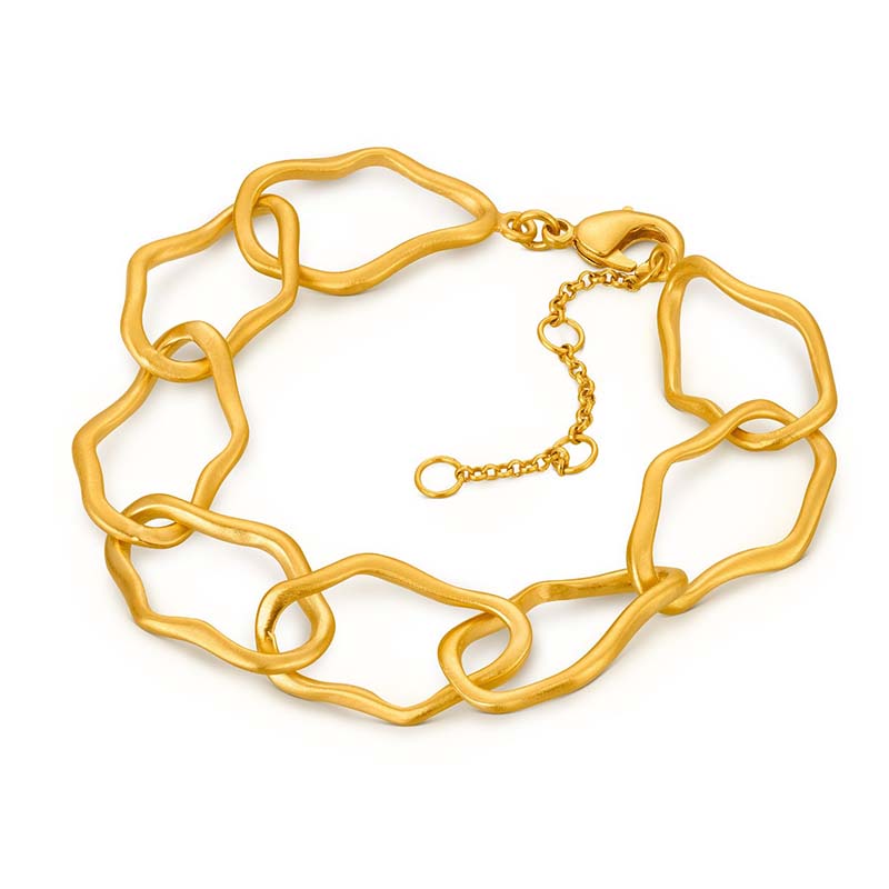 Bracelet made up of irregular intertwined circles. Piece made in 24 K gold-plated matte metal. Lobster closing and extension chain.
