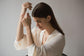 Matt 925 sterling silver necklace with a geometric pendant with three crystals. Gold plated steel wire with extension.